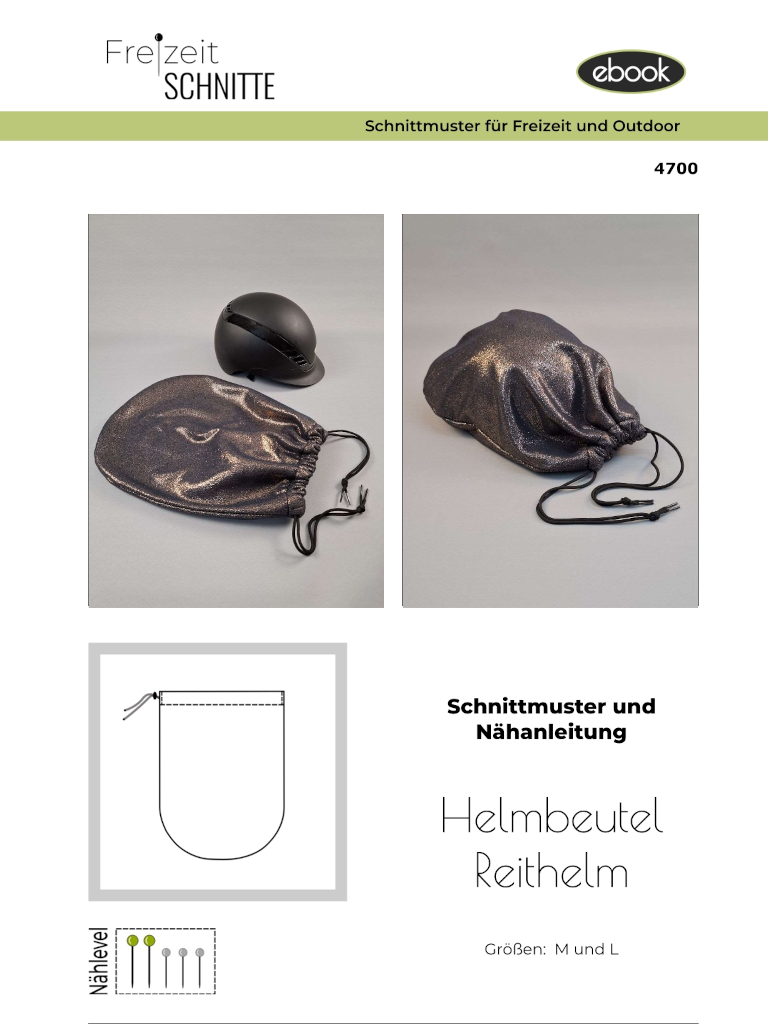 Dieses eBook beinhaltet das Schnittmuster in zwei Größen: M und L , sodass du den passenden Beutel für verschiedene Helmgrößen nähen kannst.